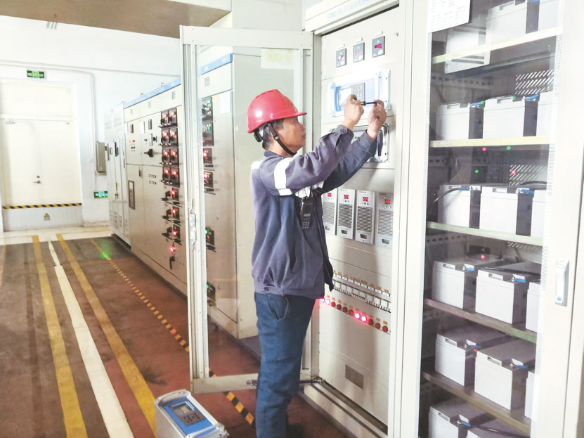 近日,雁宝能源运销公司紧密结合暑期天气对设备的影响,瞄准点检预控、规范操作、重点巡查等环节,有力保障高温峰值期间检修生产的各项工作安全、高效。图为维修电工更换穹顶仓配电室直流屏综合保护器。 本报通讯员 王 坤 摄