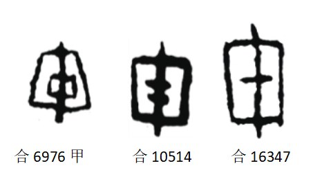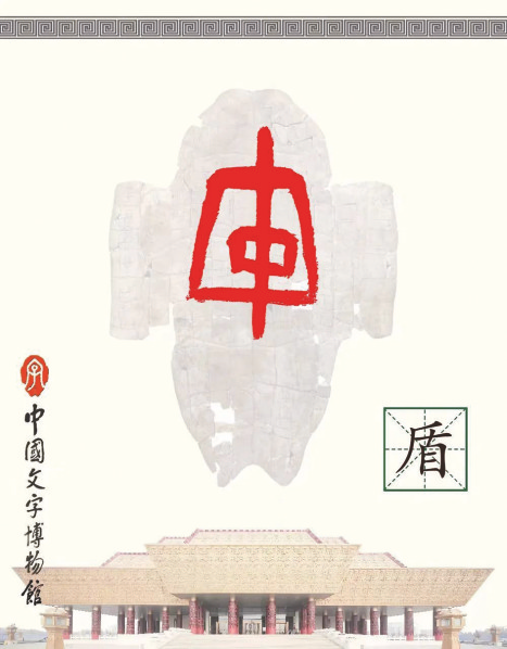 甲骨文“盾”字描绘了一面方形盾牌,字形与殷墟出土的方形盾牌颇相似。本义为盾牌,卜辞中可用作方国名。在六书中属于象形。
