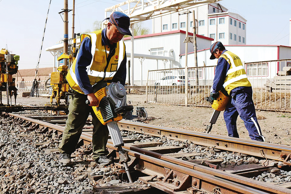 连日来,针对铁道线路昼夜温差大的实际,平庄煤业运输公司组织开展对线路、道岔、钢轨病害的专项检查,消除安全隐患,提升线路设备质量,为电煤运输提供安全保障。图为10月12日,铁道工捣固道岔枕木。本报特约记者 乔立宇 摄