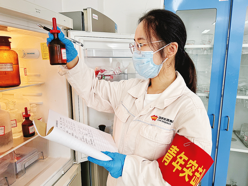 连日来,江苏宿迁公司采制化班组织青年突击队高质量推进秋季安全大检查工作,加强安全环保管理,保障机组“口粮”安全。图为10月14日,化验员检查化学药剂。本报通讯员 朱 叶 摄