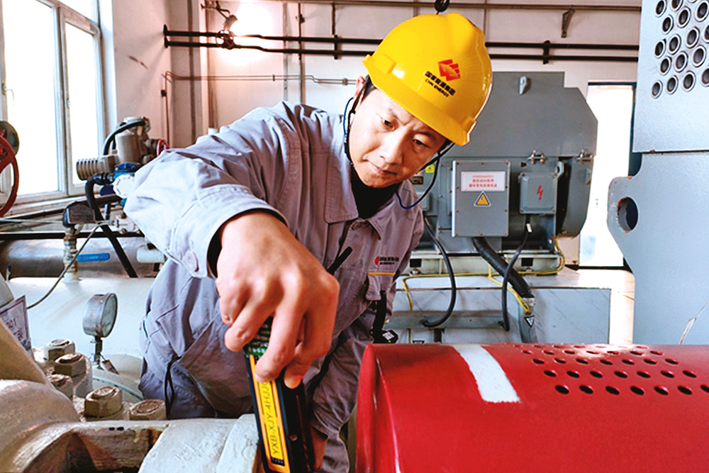 近日,河北公司沧东电厂青年职工开展换热站21热网疏水泵、06热网循环泵电机单体试运工作并一次成功,标志着该厂换热站设备系统试运拉开序幕,为顺利完成今冬明春的供热任务贡献青春力量。图为10月13日,青年运行职工进行热网循环泵电机测振工作。本报通讯员 李金强 摄
