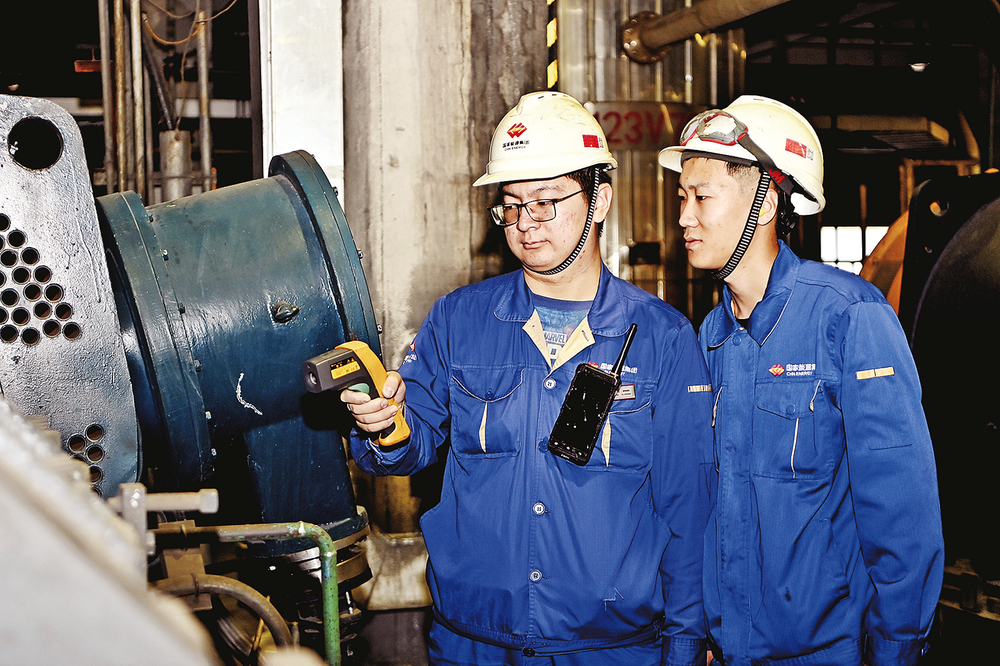 11月18日,包头化工职工检测高压灰水泵运行温度。11月份以来,该公司围绕“决战四季度、奋力保全年”的目标,严抓设备巡检工作,深入分析设备振动、压力等指标变化趋势,实时掌握机组运行状态,及时消除隐患,保障装置设备安全稳定运行。本报记者