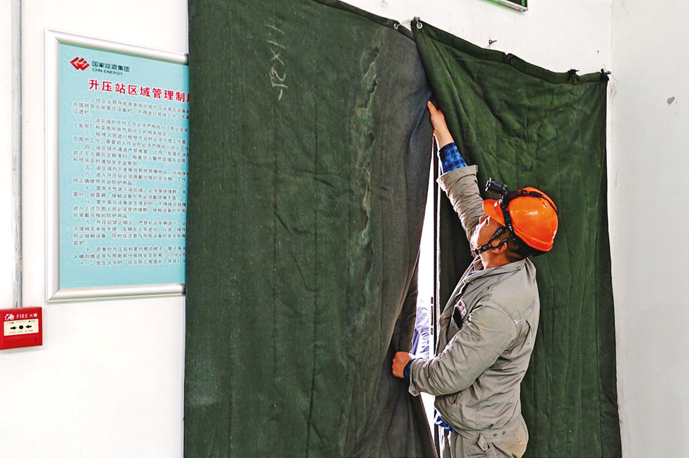 四季度以来,随着气温持续下降,辽宁朝阳公司迎寒而上、多措并举,全力做好防寒防冻各项工作,确保热电稳定供应、设备安稳度冬。图为工作人员给升压站门加装棉门帘。本报通讯员 杨凤玲 摄