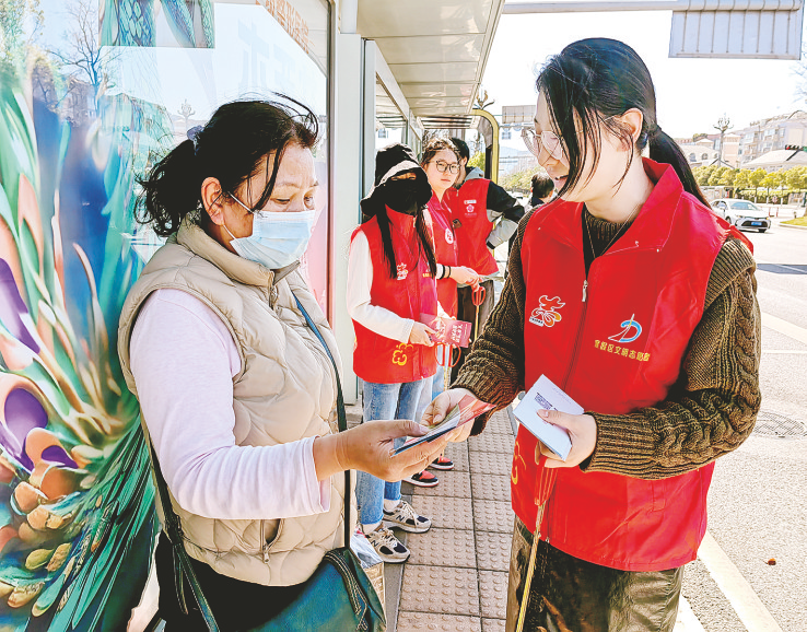 12月9日,龙源电力云南公司党建部党支部开展志愿服务进街道系列活动,用实际行动传递了爱心与温暖,为构建和谐社区、美好社会贡献了力量。图为志愿者为市民普及防诈知识。 本报通讯员