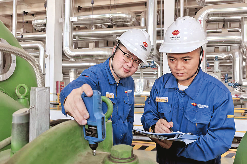 为积极应对高温天气,榆林化工将中医“望、闻、问、切”诊断技巧运用到设备日常巡检工作中,从温度、振动、声音、气味等多角度感知和掌握机泵运行情况,发现异常和潜在隐患及时处理,避免设备带病运行,切实保证装置夏季高温生产安全。图为5月21日,员工检测记录汽轮机轴承振动。本报通讯员 黄宇欣 摄
