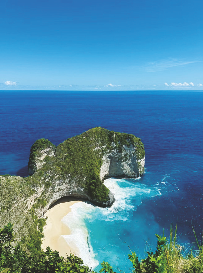 悬崖边的植被郁郁葱葱,从远处眺望,又似一只即将入水的小海豚,模样憨态可掬,让人不得不感叹大自然的鬼斧神工。