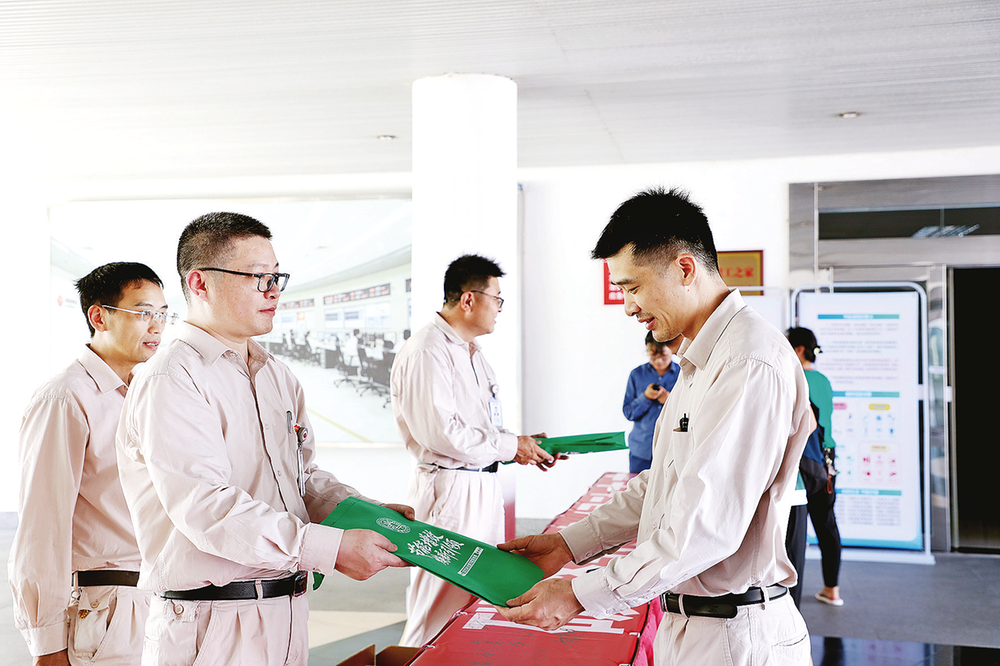 6月25日,在全国节能宣传周之际,广东台山电厂在厂区宣传点布置主题海报、讲解节能环保知识、发放环保袋,通过多样化的宣传方式,倡导职工共同践行绿色低碳的生产生活方式。图为活动现场。本报通讯员 陈俊全 毕思雯 摄