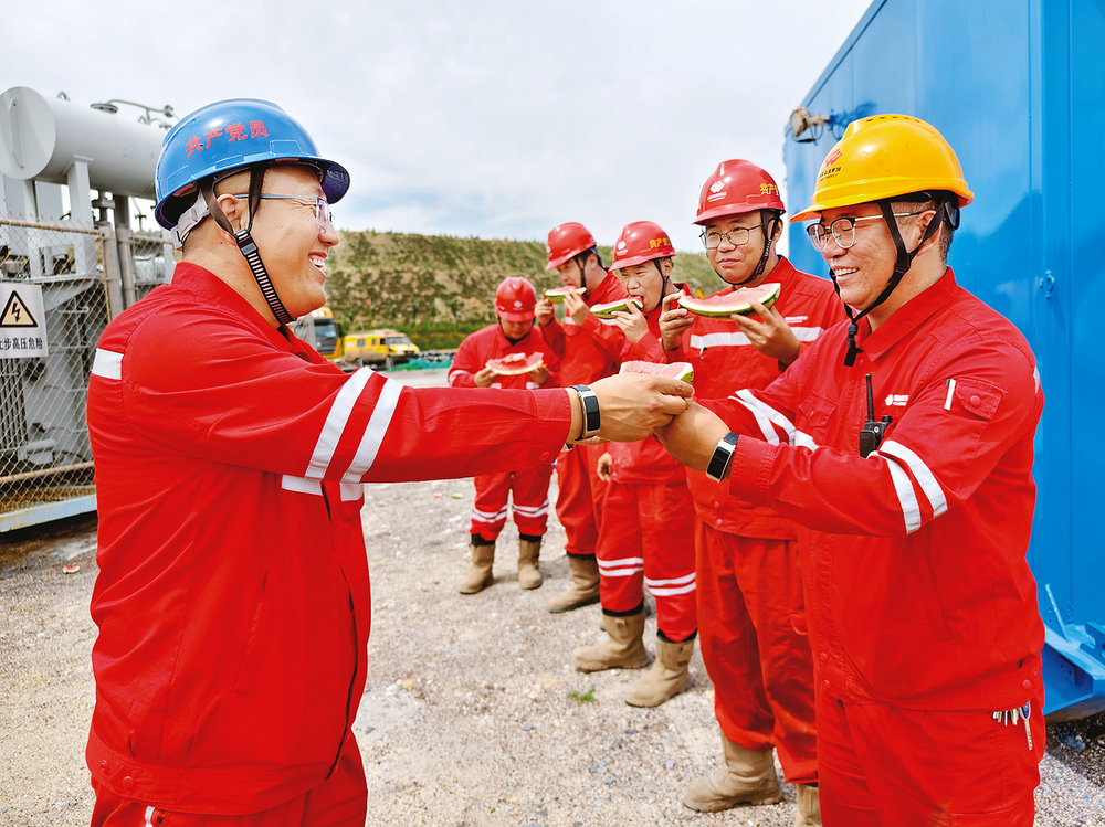 迎峰度夏以来,准能集团黑岱沟露天矿工会持续开展“夏日送清凉”慰问活动,截至目前共发放矿泉水1000瓶、新鲜西瓜3500斤,覆盖职工1000余人次,让职工在高温炙烤下感受到丝丝清凉。图为7月22日,基层管理人员给职工送上冰镇西瓜。
