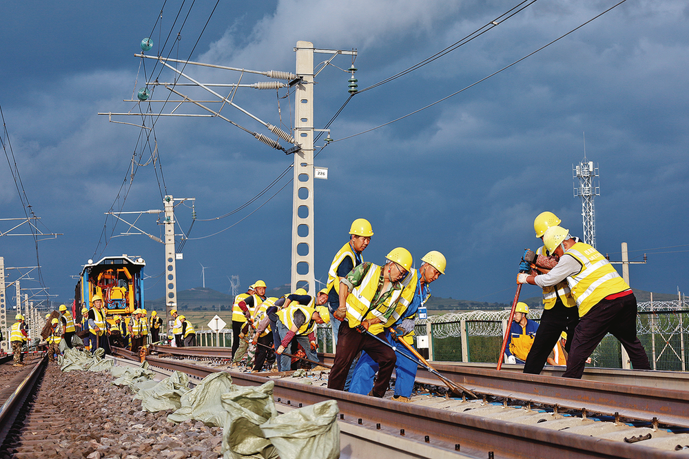 8月19日,包神铁路神朔公司朔西站区作业人员在暴雨来临前紧张换轨。近期,包神铁路紧扣汛期运输安全保障核心要求,结合管内线路实际运营状况,对磨耗值达到预警标准的钢轨进行全面排查与集中更换,从根本上消除线路设备隐患,为汛期铁路运输平稳畅通筑牢安全屏障。 本报通讯员 裴书红 摄