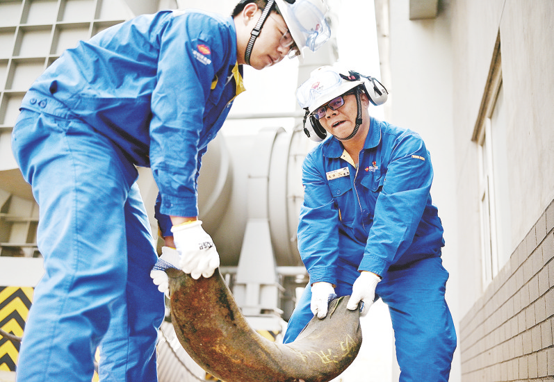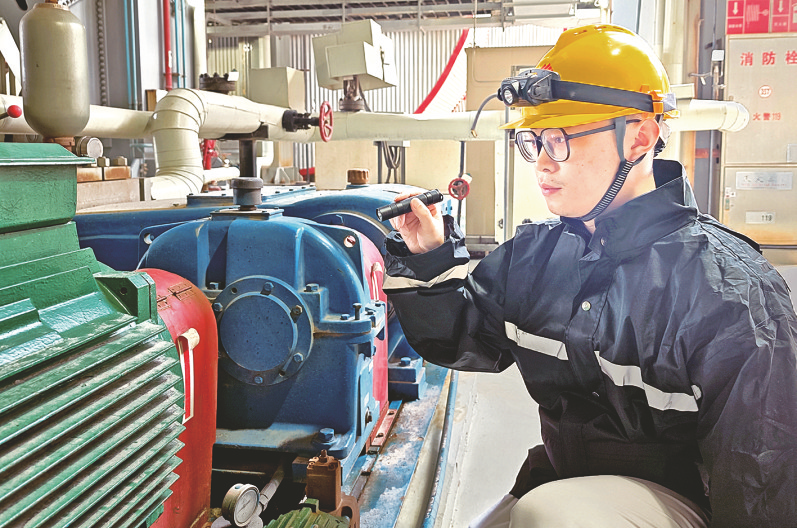 8月10日,江苏谏壁公司运行人员检查冷凝水泵电机轴承。近期,该公司周密部署防汛各项工作,全面开展专项隐患排查与风险防控行动,保障机组安全稳定运行。 本报通讯员 刘宇恒 摄