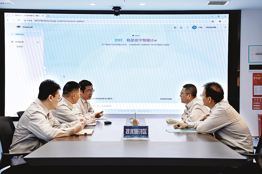 宁夏煤业公司自主研发的安全高效管理“智慧伙伴”——“安宁”智能小e系统近日正式上线,该系统深度融合先进智能技术,通过网页端、客户端、手机端等多终端协同,为公司员工提供更为便捷的移动办公与安全管控一体化服务。图为8月21日,信息中心职工围绕系统应用开展技术研讨。本报记者 高 珊 摄