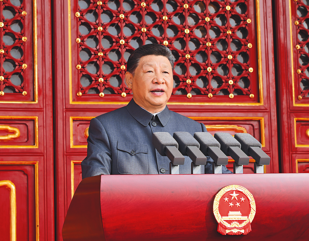 9月3日,纪念中国人民抗日战争暨世界反法西斯战争胜利80周年大会在北京天安门广场隆重举行。中共中央总书记、国家主席、中央军委主席习近平发表重要讲话。 新华社记者 谢环驰 摄