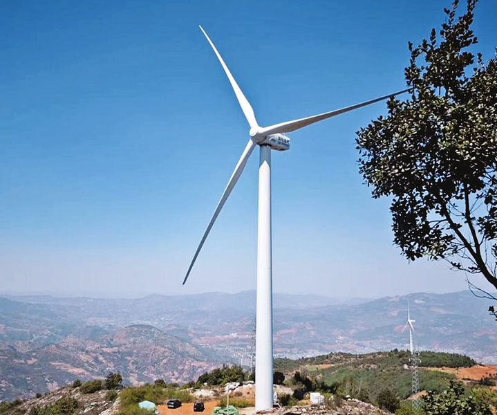 云南大风丫口风电场风电机组。