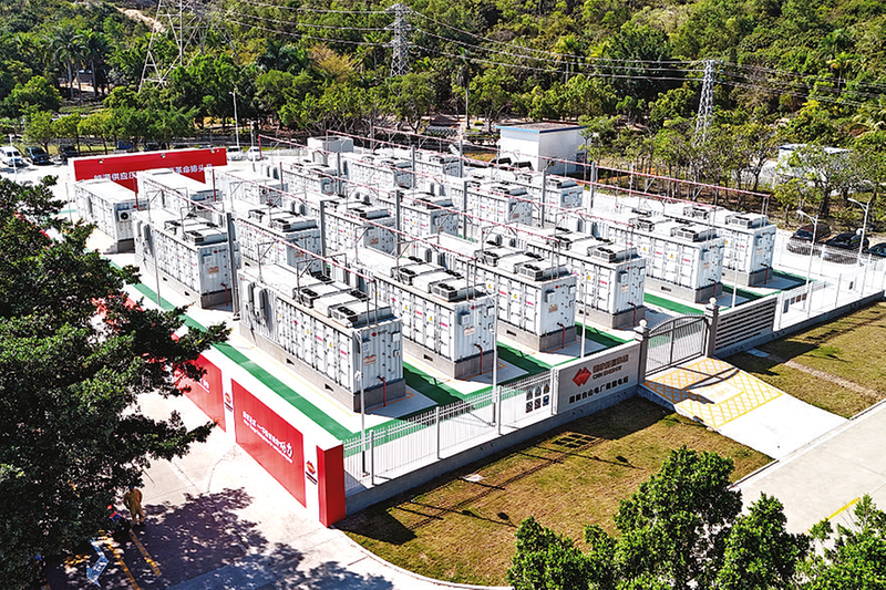 为此,该厂启动集团首例“大型燃煤机组配套60兆瓦/60兆瓦时电化学储能辅助调频研究与运营”,采用25兆瓦/25兆瓦时及35兆瓦/35兆瓦时大容量磷酸铁锂电化学储能及高压级联技术辅助调频系统,安装12组5兆瓦储能单元共计36个储能舱,并于2023年4月投运。实现了磷酸铁锂电化学储能系统与机组调频的分配协调控制,通过EMS系统完成一次调频,促进节能减排;并构建“主控—EMS—PCS”三层全自动化架构,100毫秒控制周期达国内领先。