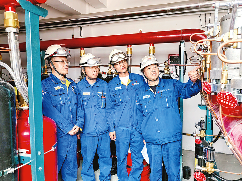 9月以来,榆林化工组织开展七氟丙烷灭火系统专项培训,以“讲练结合、问答互动”的模式,由各生产装置安全工程师担任讲师,严格对照《七氟丙烷灭火系统操作规程》开展现场教学,切实打通操作“堵点”、提升现场消防处置技能,为装置安全运行筑牢防线。图为9月10日,甲醇厂安全工程师(右一)讲解七氟丙烷灭火系统的基本构造。本报通讯员