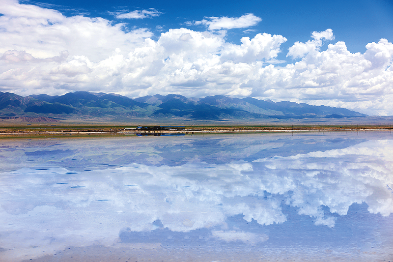 茶卡盐湖,宛如天空遗落的明镜。澄澈湖水倒映着蓝天白云、连绵远山,天地交融,似梦幻之境,令人沉醉于这纯净空灵的绝美画卷。