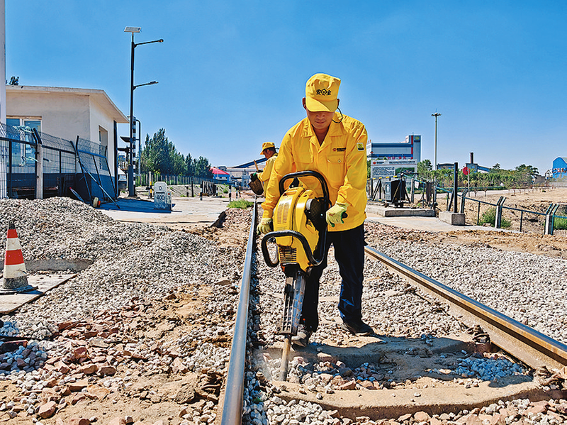 焦化铁路公司利用天窗点,对管内专用线开展集中捣固作业,提前部署技术人员对线路病害点位进行逐一排查,精准标注需捣固的区段及每处起拨道参数,确保作业后线路安全稳定。图为9月19日,线路工进行捣固作业。本报通讯员 杨 梓 摄
