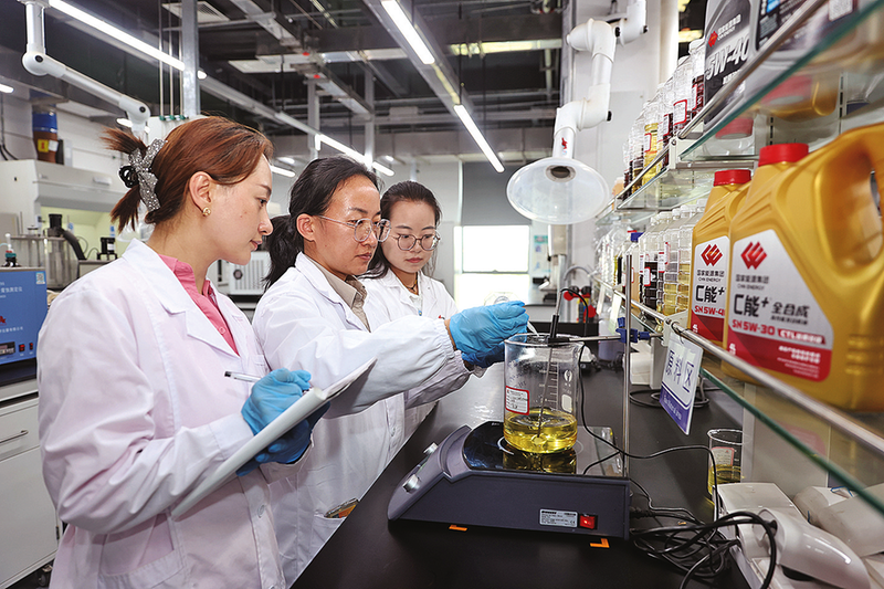 为加速青工成长、夯实人才梯队,宁夏煤业煤炭化学工业技术研究院充分发挥技术骨干“传帮带”作用,通过“一对一”靶向辅导、“一对多”经验分享,持续提升青工专业技能水平。图为9月18日,油品研发技术骨干(中)为青工讲解油品合成相关技术。本报记者 郝 华 摄