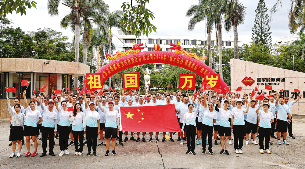 9月27日,湖北南河电厂组织职工与国旗同框,大力弘扬爱国主义精神,营造喜庆欢乐祥和的国庆节日氛围。本报通讯员 戴 明 摄