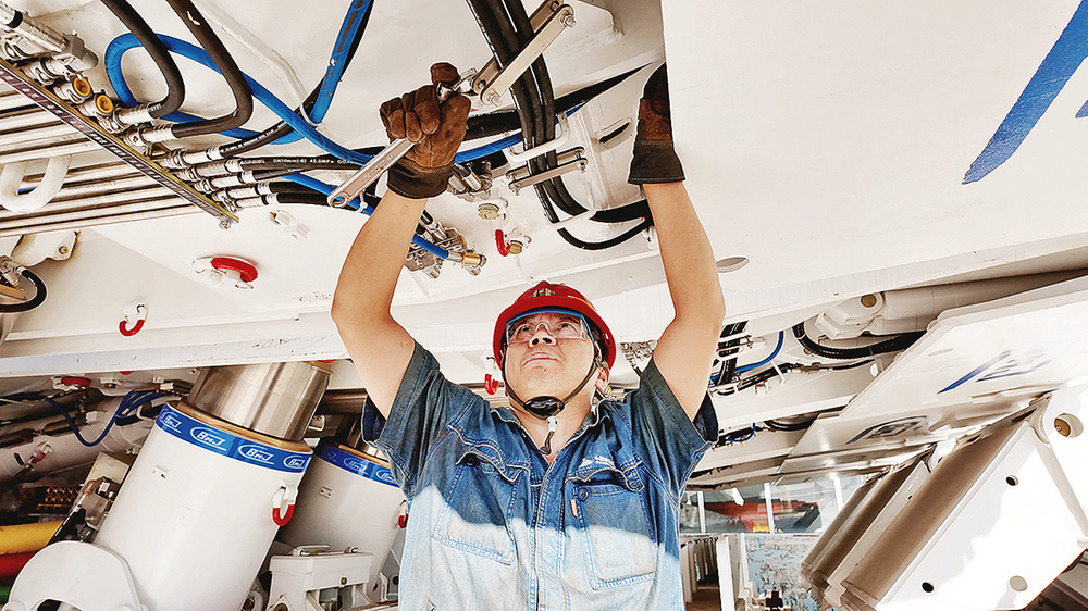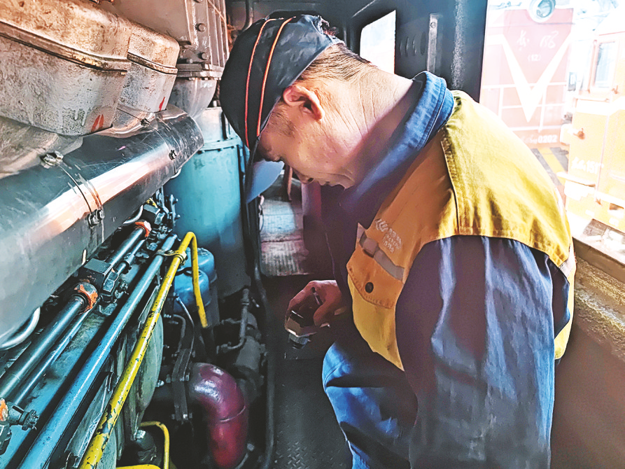 近期,平庄煤业运输公司开展秋季内燃机车整修工作,按照“一车一方案”规定,加大机车内燃机、电气设备和制动系统等重点设备质量问题的整治力度,旨在消除季节性变化对铁路运输的影响,提升运用机车质量。图为10月8日,检修人员检查机车管路。本报特约记者 乔立宇 摄