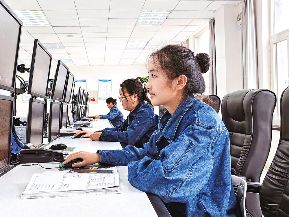 进入10月份,宁夏煤业水务公司锚定水质达标、能耗降低、系统稳定三大关键指标,将责任扛在肩头、任务抓在手上,全力推进各项生产保障工作,以稳定运行护航能源保供。图为10月20日,化工水处理车间岗位人员监控水流量、药剂投加量等关键参数。本报记者