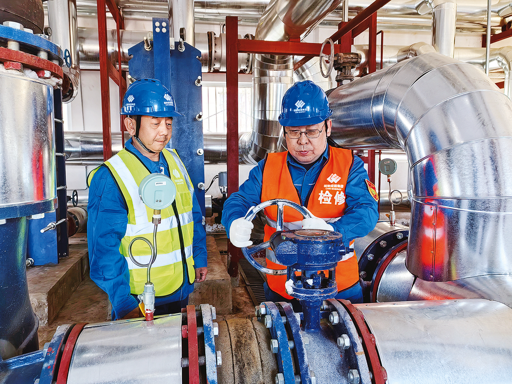 10月15日,吉林江南热电公司正式开启本年度供热工作。供热期间,该公司将持续优化供热服务流程、提升供热保障质量,全力为城市居民营造温暖宜居的生活环境。图为供热人员查看一次网供水压力。报通讯员