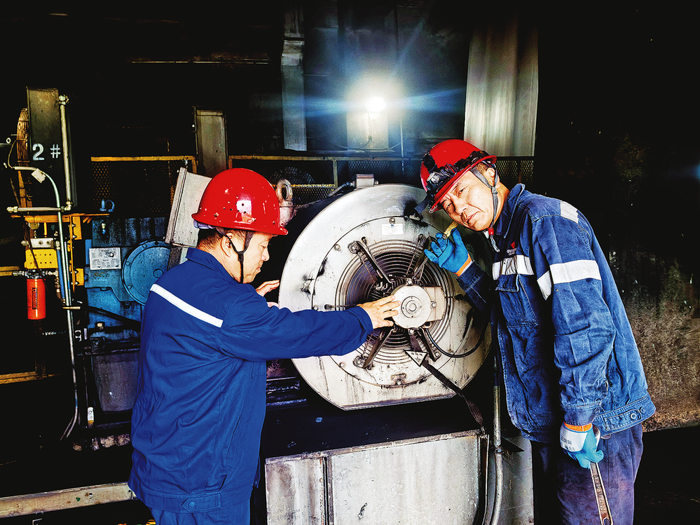 近日,雁宝能源运销公司严格落实秋检计划,对煤炭筛选设备开展专项检修维护,聚焦煤炭筛选全流程,以振动筛、输送带、智能干选系统等核心设备为重点,推进“地毯式”巡检维护,全力保障煤炭筛选高效精准运行。图为10月9日检修工听诊散热风机机尾轴承。本报通讯员 王坤 摄