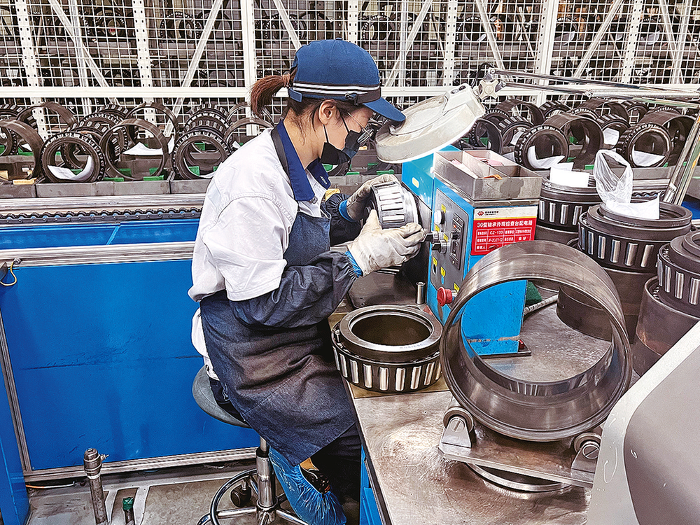 今年以来,铁路装备沧州分公司聚焦铁路货车核心部件保障,全面推行“精检细修”管理模式,针对轴向游隙、密封性能等关键指标,制定专项检查表,结合历史数据进行对比,精准判断各类故障发生趋势,实现检修质量提档升级。图为10月20日,青年女工精检细修铁路货车轴承。 本报通讯员 吕锁明 谭富海 摄