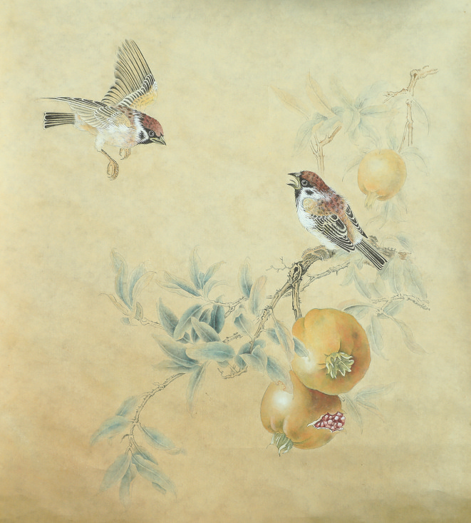 秋实闻秋鸣(国画)宋晓宁
