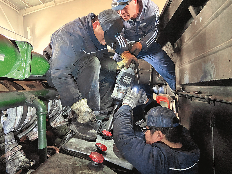 日前,针对4B型内燃机车油耗成本高的难题,平庄煤业运输公司成立技术攻关小组,采用与原管路同材质高强度耐腐蚀连接管,配合使用法兰密封接口,搭建滤清器到主油箱独立回收通道,使清洁燃油回输复用,达到良好节油成效。图为10月29日,技术人员安装节油系统。本报特约记者 乔立宇 摄