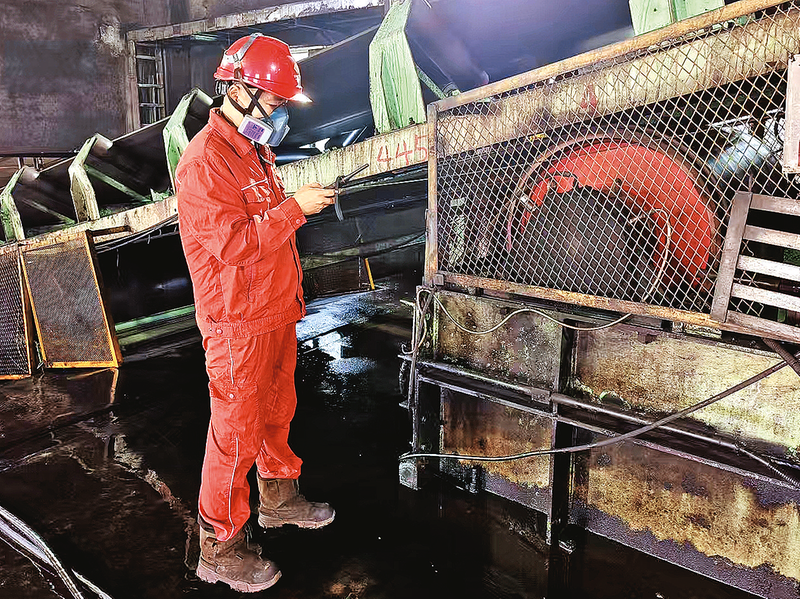 为保障生产安全稳定,准能选煤厂积极引入先进技术,将移动终端与测振设备深度融合,精准采集设备振动数据并迅速上传至后台系统,提升了设备维护水平。图为10月28日,运行人员运用移动终端对滚筒进行精准测振操作。本报通讯员 李成德 摄