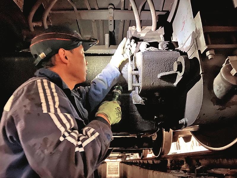 为应对低温天气对内燃机车产生的不利影响,平庄煤业运输公司按照“防泄漏、防冻裂、防故障”工作思路,开展对机车冷却系统、制动管路、燃油管路进行专项检查,细致排查管路接口处是否存在渗漏隐患,检查各风缸排水阀,确保积水彻底排空,杜绝冻裂风险,保障机车上线运行安全。图为11月6日,维修工检查机车管路。本报特约记者 乔立宇 摄