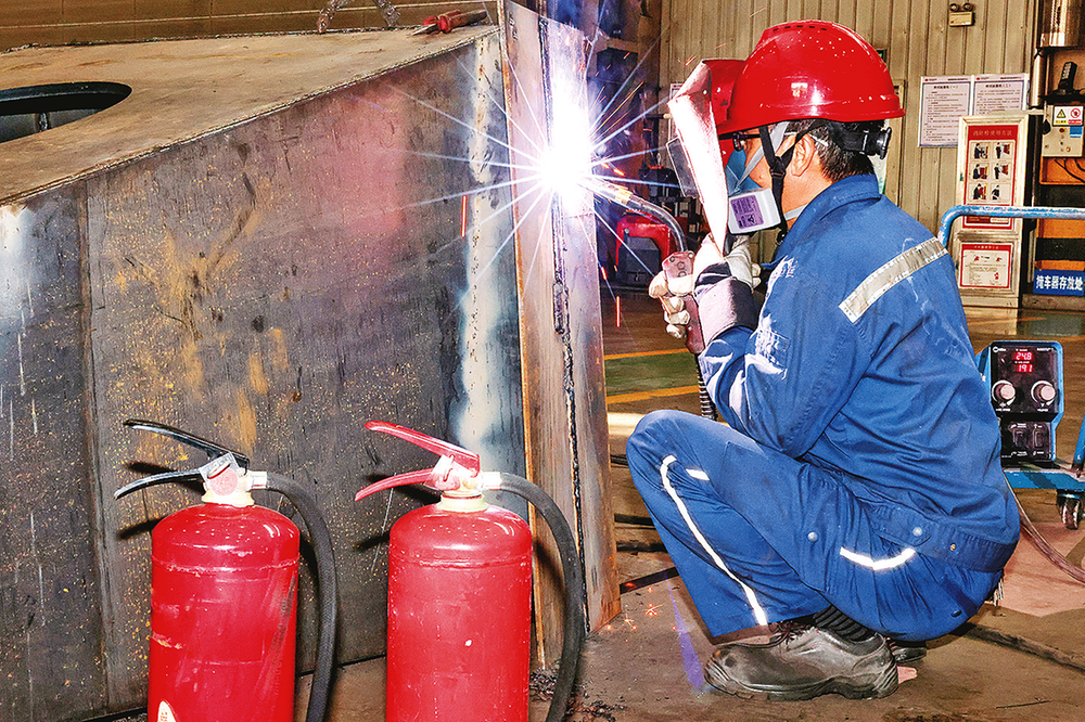 进入四季度,准能集团设备维修中心结合设备结构特点及检修作业实际需求,严格遵循矿用设备支撑装置设计标准,自主制作矿用卡车专用支车墩,有效避免了传统千斤顶支车时因接触面积小而产生的易偏摆问题,同时消除了长时间支撑所带来的安全隐患,为矿卡车架、“A”型架等大型结构件的更换作业筑牢了安全防线,进一步保障了检修工作的平稳高效开展。图为11月4日,焊工 在焊 接支车 墩称重 壁。