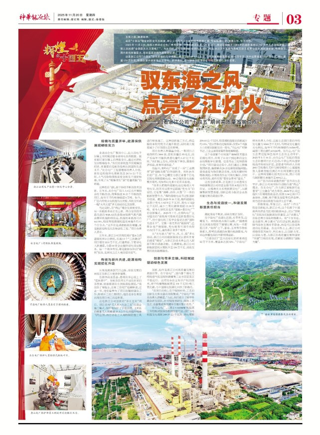 “十四五”期间,浙江公司总装机容量跃居在浙央企首位,通过清洁火电升级、新能源多元布局、技术创新驱动及生态协同实践,实现能源保供硬核担当与绿色转型高质量发展齐头共进。