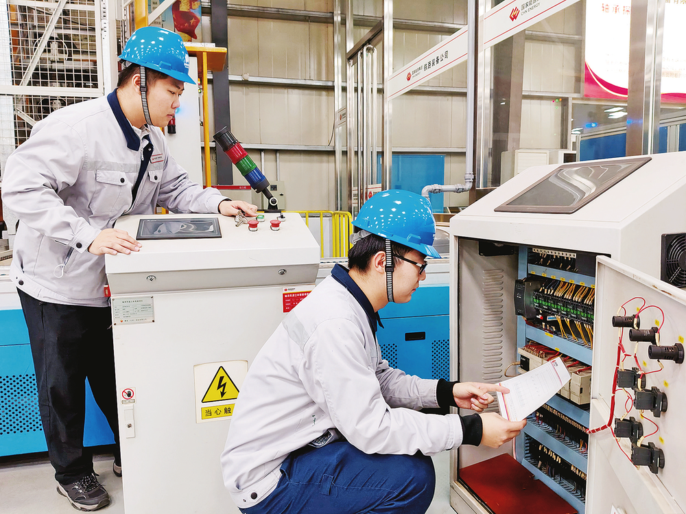连日来,寒潮大风天气来袭,铁路装备沧州分公司迅速行动,加大设备设施专项防护力度,强化隐患排查,严格应急救援物资管理,扎实做好极端恶劣天气风险防范工作。图为11月19日,职工排查轴承检修设备状态。