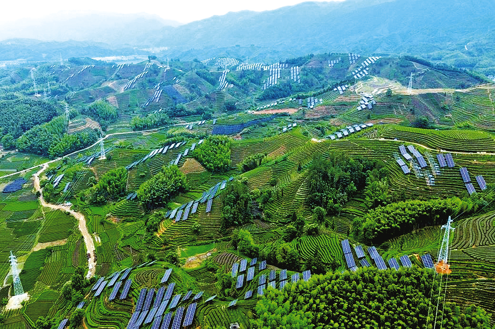 在浙西南遂昌县,连绵的茶山披上了“蓝色铠甲”。当地茶农何文平站在自家的茶垄旁,望着眼前的光伏板满脸喜悦:“现在除了有租金,还有工资呢!”他解释说,过去一年,他受雇参与了项目的辅助建设工作,即将开工的二期项目,他的名字也有望出现在项目用工的名单里。