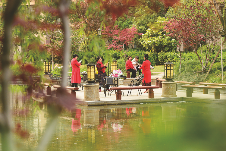 绿荫环绕的一池碧水边,总少不了邻居阿姨们的身影。有的唠着家常,有的举着手机记录美景,有的陪伴孩子嬉戏玩耍。闲适的身影与静谧的风光相映成趣,日子仿佛在这里放慢了脚步,每一帧都是“人在画中游”的悠然。