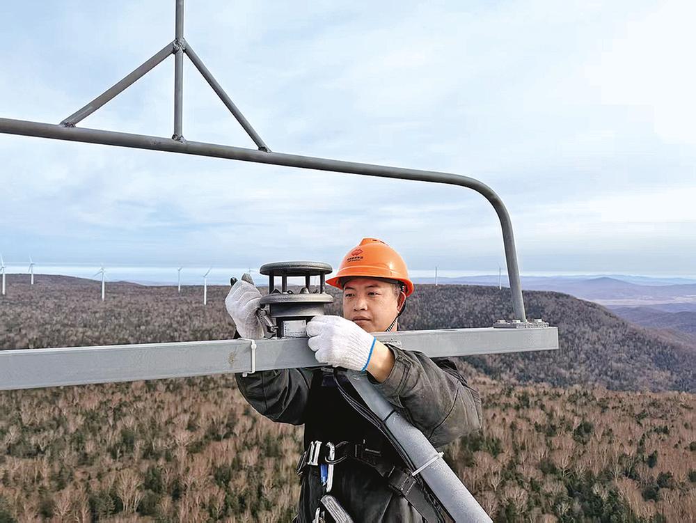 龙源电力吉林公司以冬季安全检查为契机,全面排查并及时消除各类安全隐患,进一步强化安全监督管理,有效提高了设备运行稳定性。图为11月14日,公司检修人员更换风速仪。本报通讯员