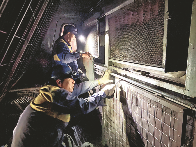 近期,雁宝能源运销公司将迎峰度冬能源保供作为当前首要政治任务,调动检修力量,在确保生产任务的前提下合理安排设备整修工作,切实做好预防性检修,对检查出的问题严格按照“五定”措施进行整改,最大限度发挥机电设备效能;同时,结合往年机电设备防寒越冬经验,加大防寒防冻相关措施的学习,增强职工安全生产意识,有效提高防寒防冻工作的规范性;通过梳理可能出现的极端天气对设备的影响及应对措施,有效推进防寒防冻措施落实,做到有备无患全力保供。图为11月15日,检修人员更换电机轴承。 本报通讯员 王坤 摄