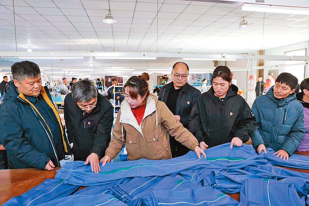 12月1日,西部铁路公司机关党支部联合物资公司宁夏分公司党支部,赴银川市兴庆区月牙湖乡滨河家园三村开展党建共建送温暖活动。活动中,双方支部党员与村民共话移民故事、共商乡村振兴,还为村民宣讲冬季安全用电及消防知识,并送上米面油等慰问品。图为党员参观村内帮扶车间。本报通讯员 景维斌 摄