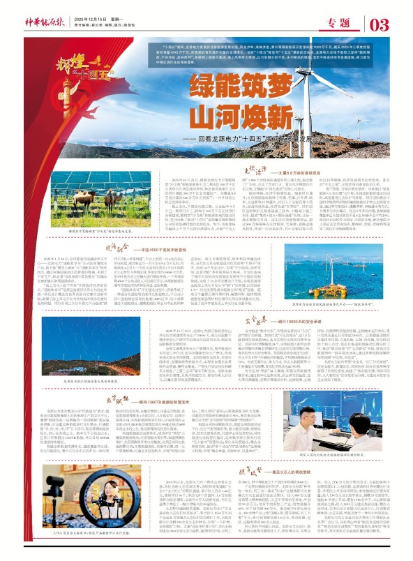 “十四五”期间,龙源电力紧紧抓住新能源发展机遇,风光并举、海陆并进,累计取得新能源开发指标超7000万千瓦,控股装机容量突破4300万千瓦,实现量的增长和质的提升。 (内容详见第三版)