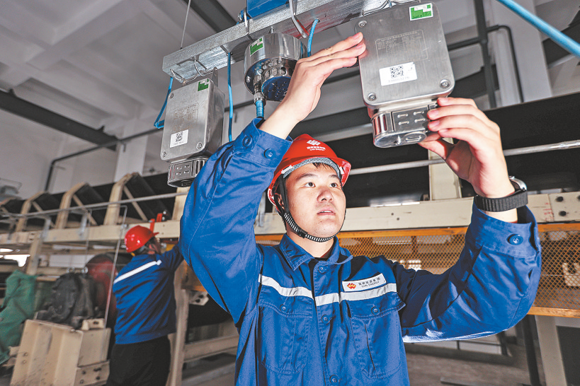 工程管理部人员现场调试验收采煤半连续EPC工程输煤皮带保护装置。