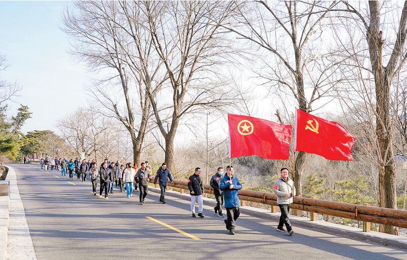 12月中旬,山东泰安公司开展2025年“踏溪向山聚力同行”主题徒步活动,共计150余人参与活动,不仅缓解了工作压力,更强化了聚力同行的团队意识。图为12月13日,第二批参与徒步的职工在泰山山间步道前行。