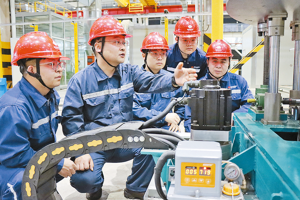 准能设备维修中心坚持以延伸拓展青年人才“理论向实操转化”、技能人才“智能化技术适配”、专业技术人才“综合管理能力提升”为导向,针对不同岗位层级设计递进式培养体系,推动人才队伍素质与智能化检修、安全生产经营管理等重点工作需求深度契合,为企业高质量发展筑牢人才支撑。图为12月22日,二级内训师(左二)为青工讲解螺栓分解机器人部件夹持装置的工作原理。 本报通讯员 张国臣 摄