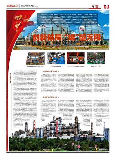 本报讯(特约记者 张晓刚)“十四五”期间,包头化工作为国家级煤制烯烃示范工厂,坚定贯彻“高端化、多元化、低碳化”发展战略,以科技创新为核心动力,持续推进产业转型升级,在绿色发展、能效提升和产品创新等方面取得显著成效,走出了一条具有示范意义的现代煤化工高质量发展之路,不仅实现了自身的跨越式发展,更为推动整个煤化工行业的技术进步和绿色转型贡献了重要力量。