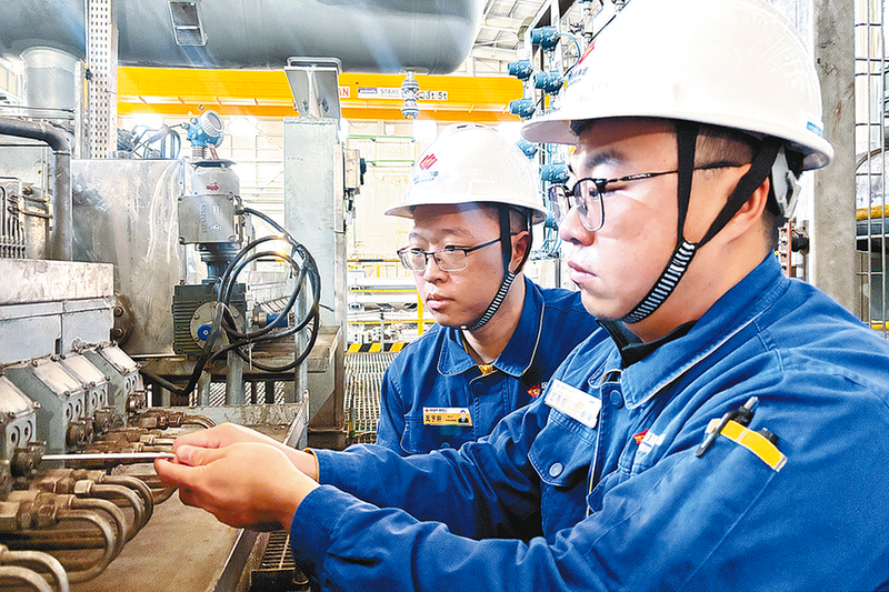 时值年末,榆林化工采用“数据监测+人工点检”的双重保障模式,重点强化对压缩机、中压热水泵、切粒机等关键机组的监控力度,并依托DCS控制系统,实时监控压缩机柱塞温度、轴承温度、十字头振动及切粒机进退刀压差等核心参数,形成“数据驱动、预知维修、动态优化”的精细化管理机制,为全面实现年度生产经营目标注入强劲动能。图为12月28日,岗位职工调整压缩机内部注油量。本报通讯员 高宁宁 摄