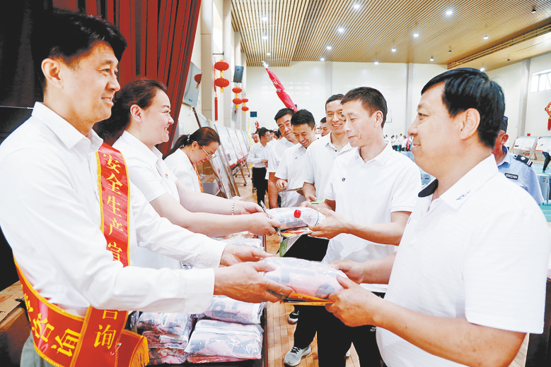 “安全咨询日”上工作人员发放安全毛巾。