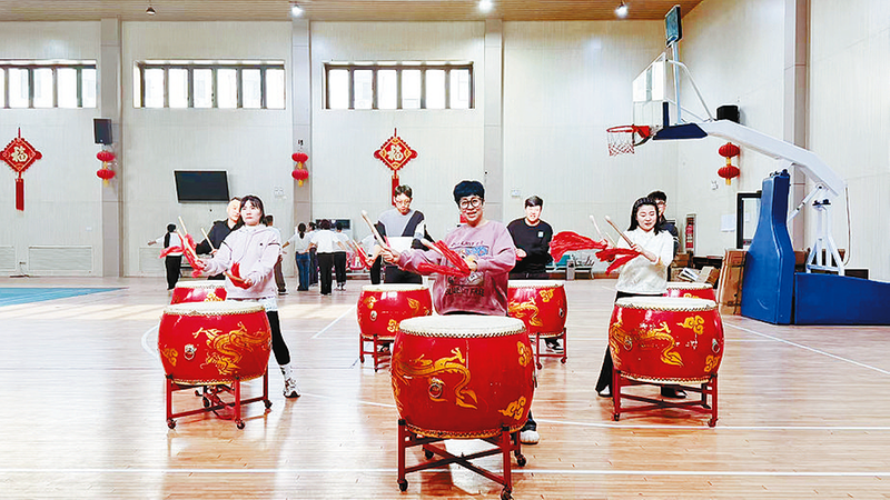 职工排练文艺汇演节目。