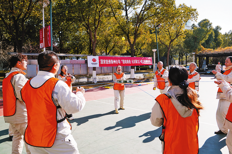 12 月 26日,江苏泰州公司组织开展“团结奋进、元旦聚力”职工团建活动,现场气氛热烈,洋溢着团结、欢乐与奋进的新年气象。图为职工参与“同心鼓”项目。本报通讯员 王立宇 摄