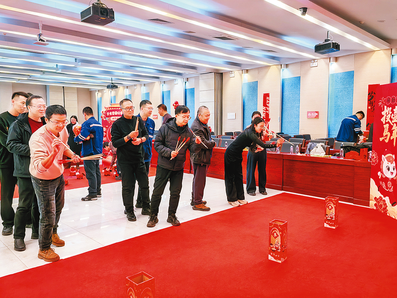 12月30日,准能集团智能信息中心开展“庆元旦、迎新年”趣味活动,精心设置投壶、猜灯谜、套圈、击鼓传花等项目,在尽情享受欢乐的同时增加团队凝聚力。图为职工参加投壶比赛。 本报通讯员 马栋良 摄